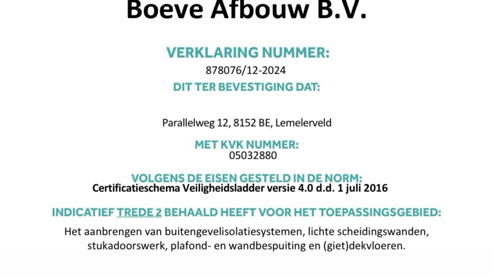 Boeve Afbouw - SCL Certificaat
