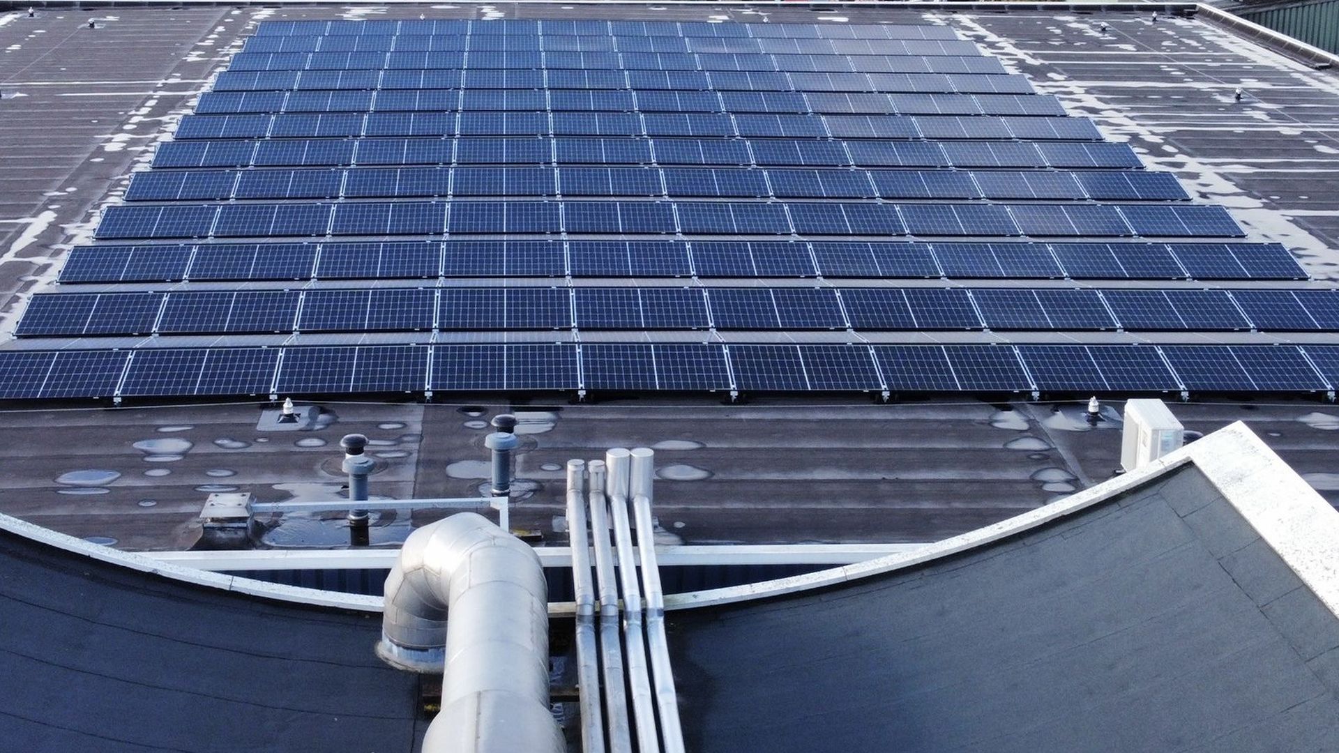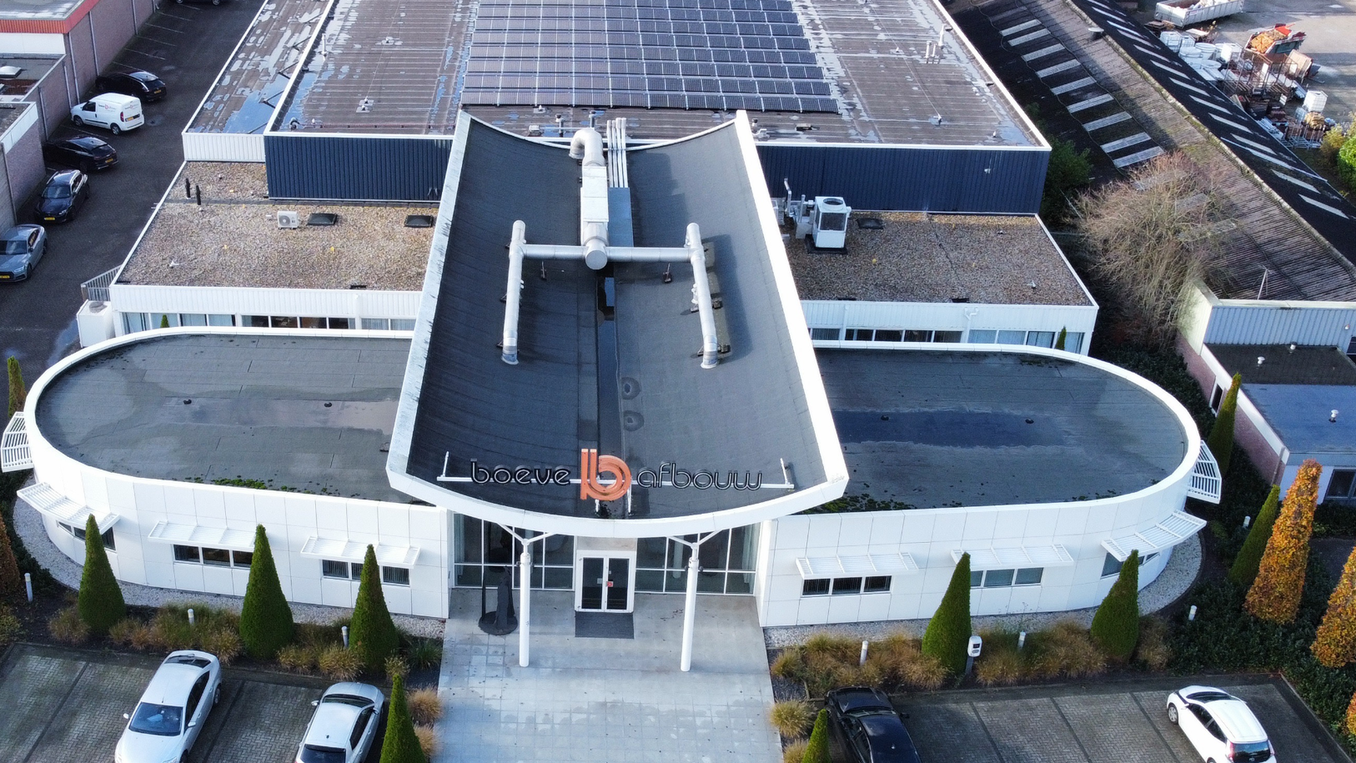 Ook ons VRF-systeem, klimaatbeheersing voor onze kantoren, draait op deze zonnepanelen. Dank aan Jacob Klompenmaker voor de mooie beelden van bovenaf.