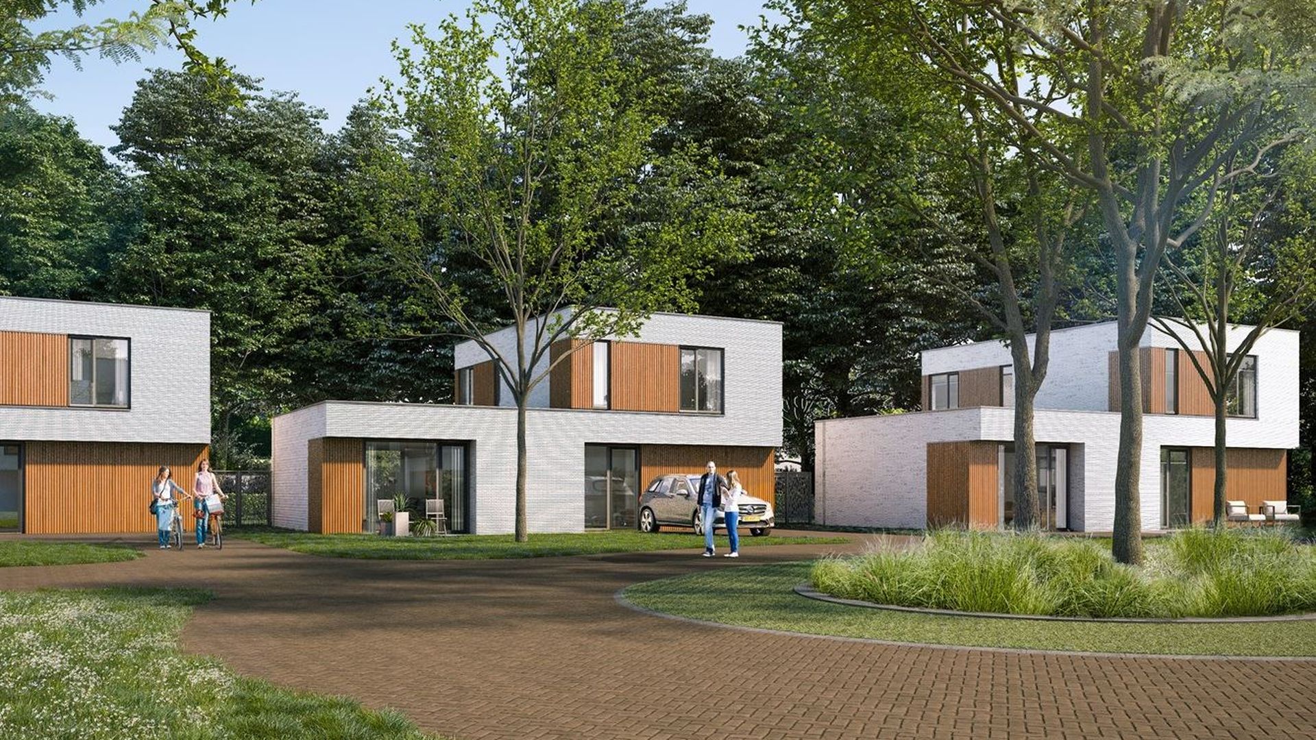 In een woonwijk met jaren ’30 huizen in Amersfoort bouwt van den Hengel negen moderne, luxe woningen die speels verspreid liggen rondom een gezamenlijke brink. Aan de ene kant zijn ze qua architectuur duidelijker en meer uitgesproken, aan de andere kant zijn ze in volume een stuk bescheidener dan de andere huizen in de wijk.
